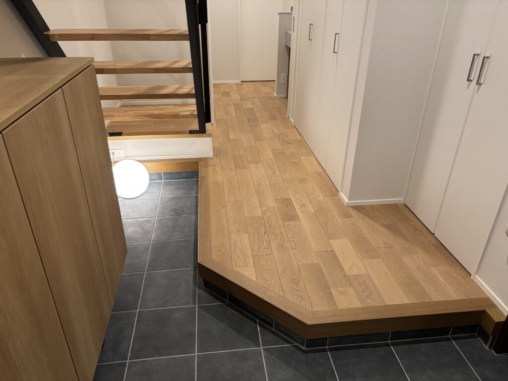 メインフロアと色味の近い床材を採用することで、床材の色味にも一貫性をもたせ、家全体で統一感のある空間にしています。