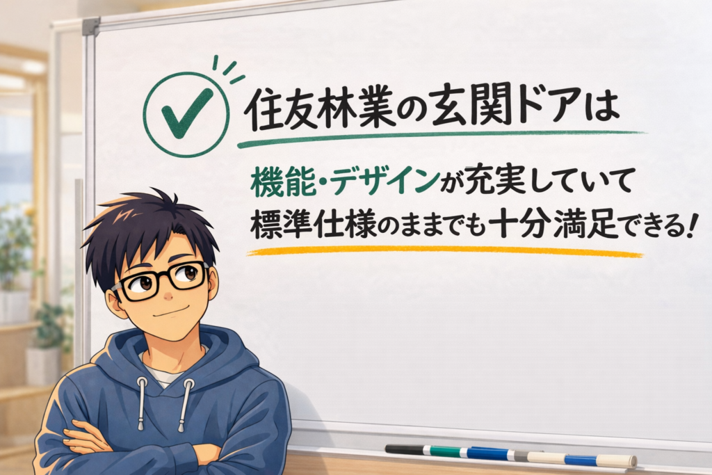 という人向けに、「住友林業なら玄関ドアはこう選べば良いんだ!」っていうのをわかりやすく解説しています!