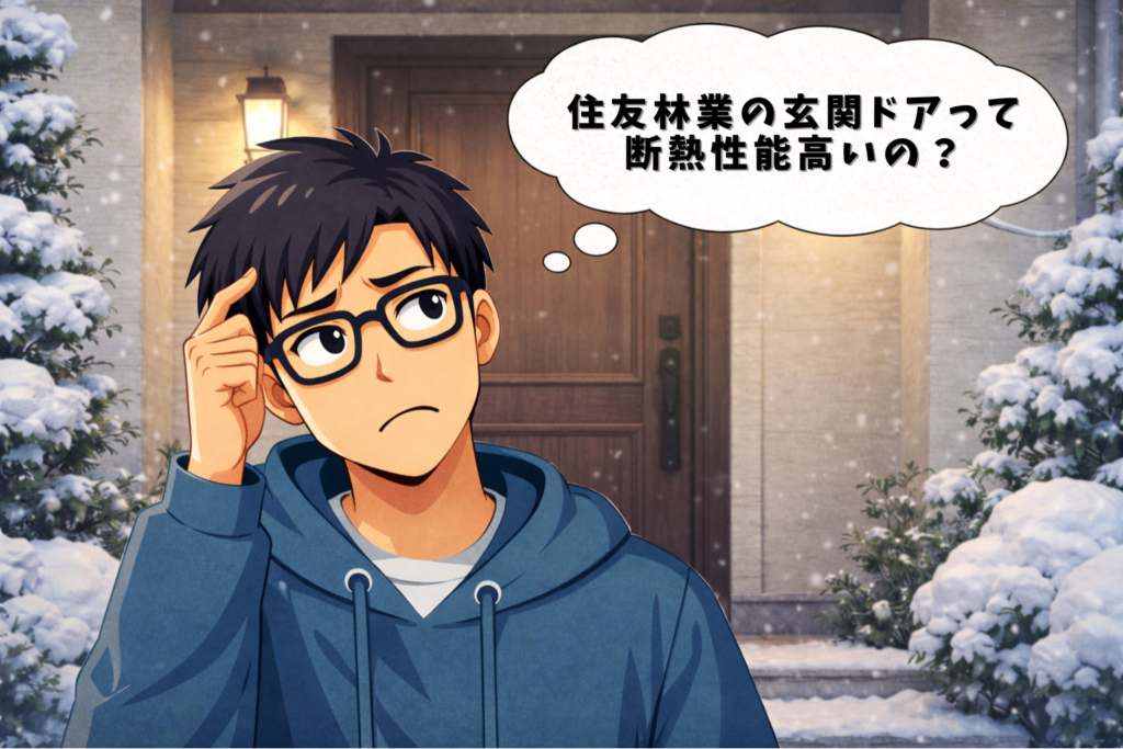 住友林業の標準仕様の玄関ドアの断熱性能は以下のとおり。