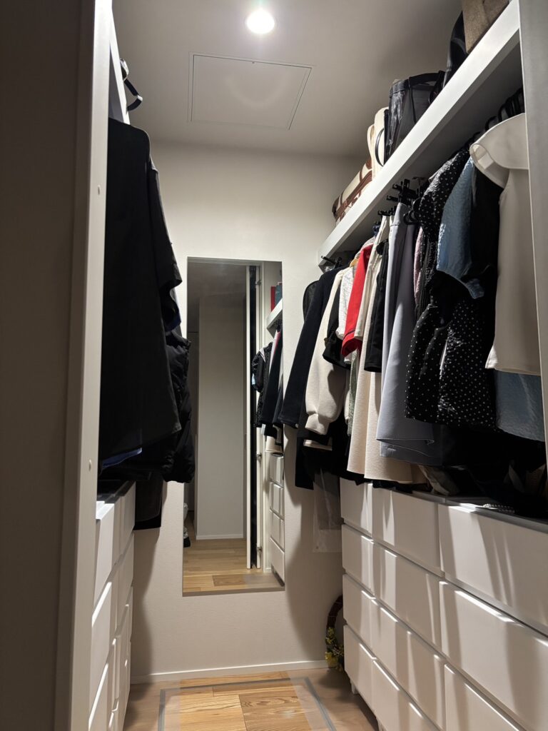 我が家のWICは1.5帖とコンパクトですが、寝室とはつながっていない「独立した部屋」としました。
