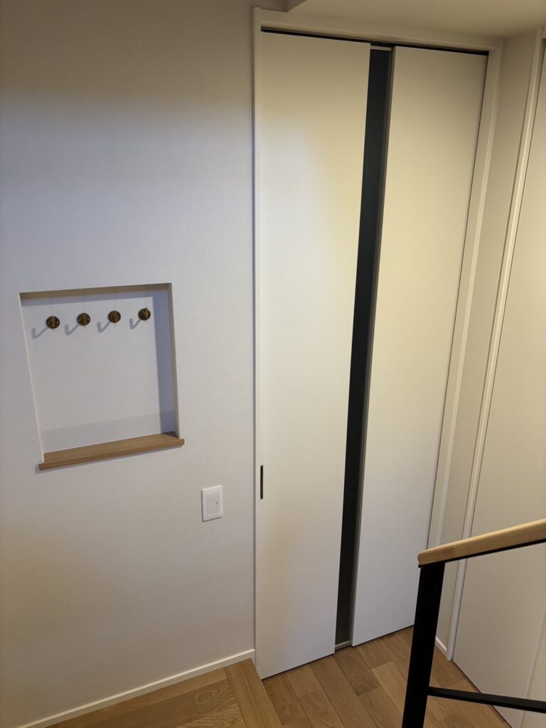 この音で寝ている子どもが起きてしまうのが心配だったため、出入りの際に気を遣わずにすむよう、あえて開き戸を選びました。