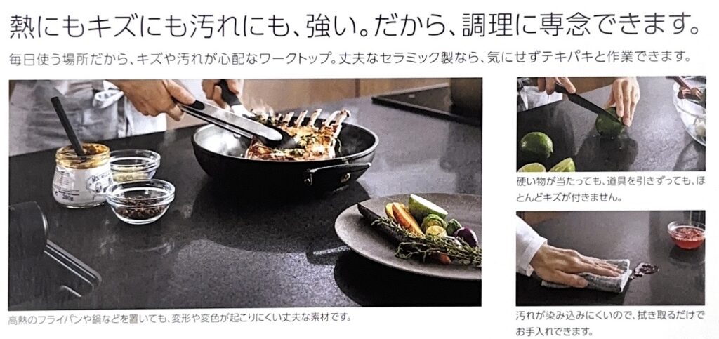 LIXILの大きな魅力ははセラミックカウンターが標準仕様で採用できるところ。