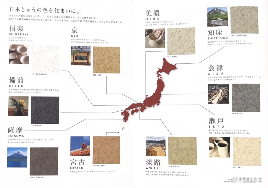 - SODO(ソード)‥‥土壁のような柔らかい質感で、和モダンな佇まいを演出。